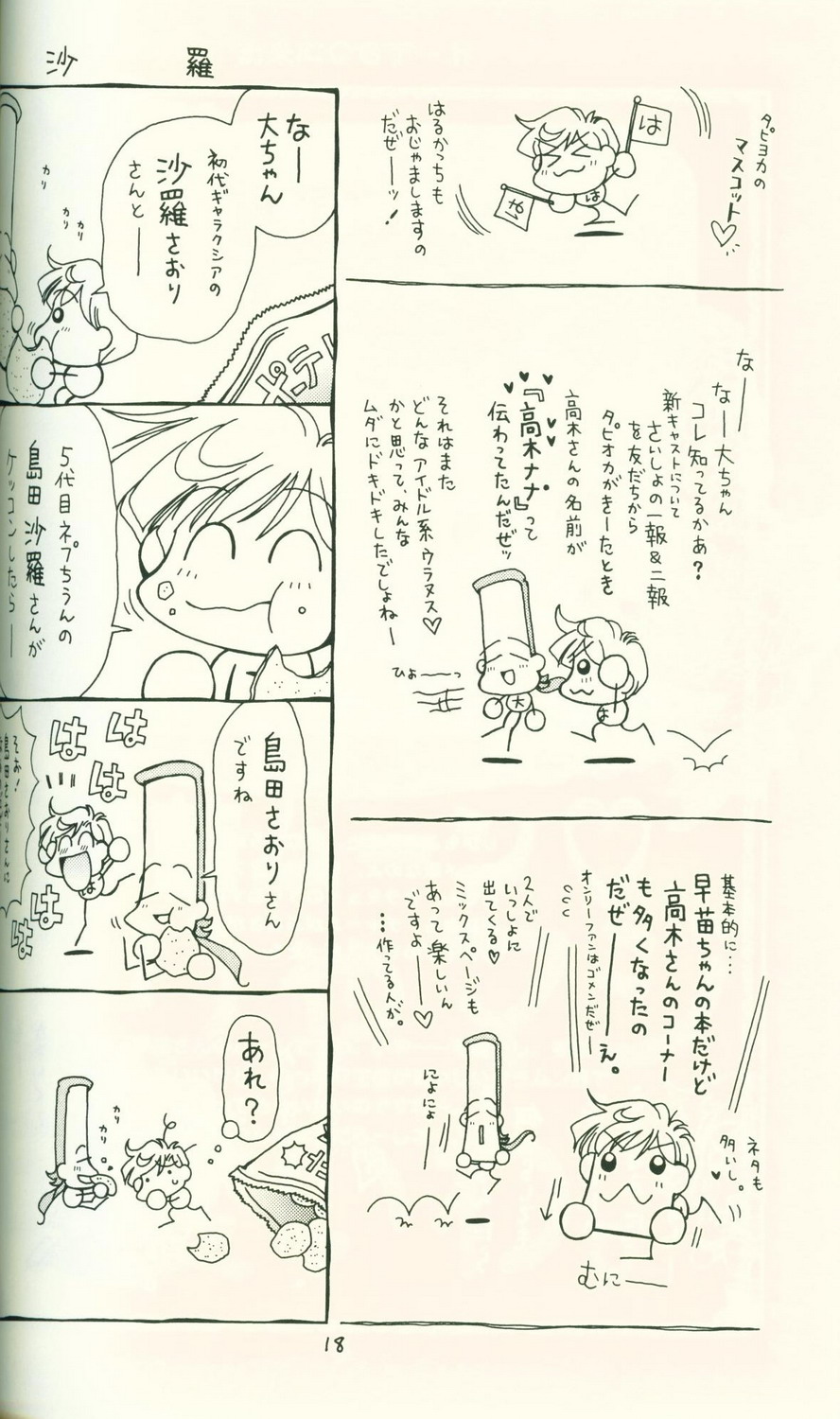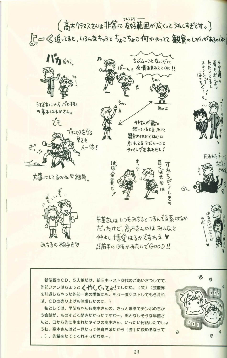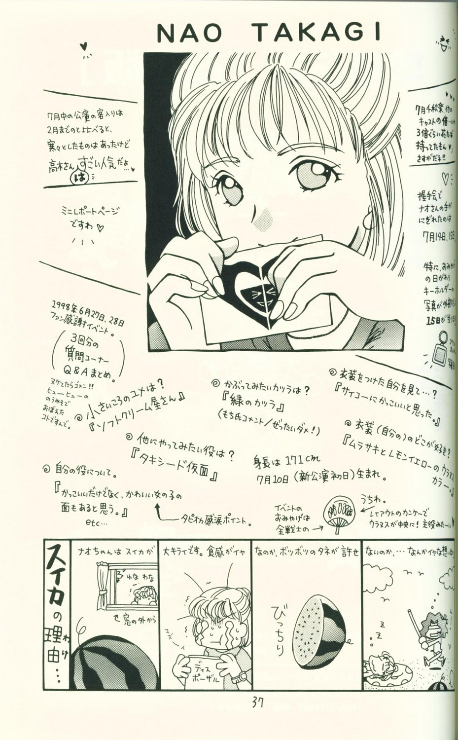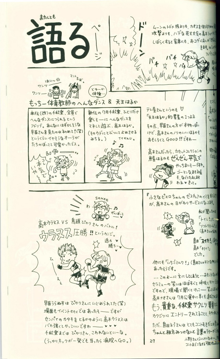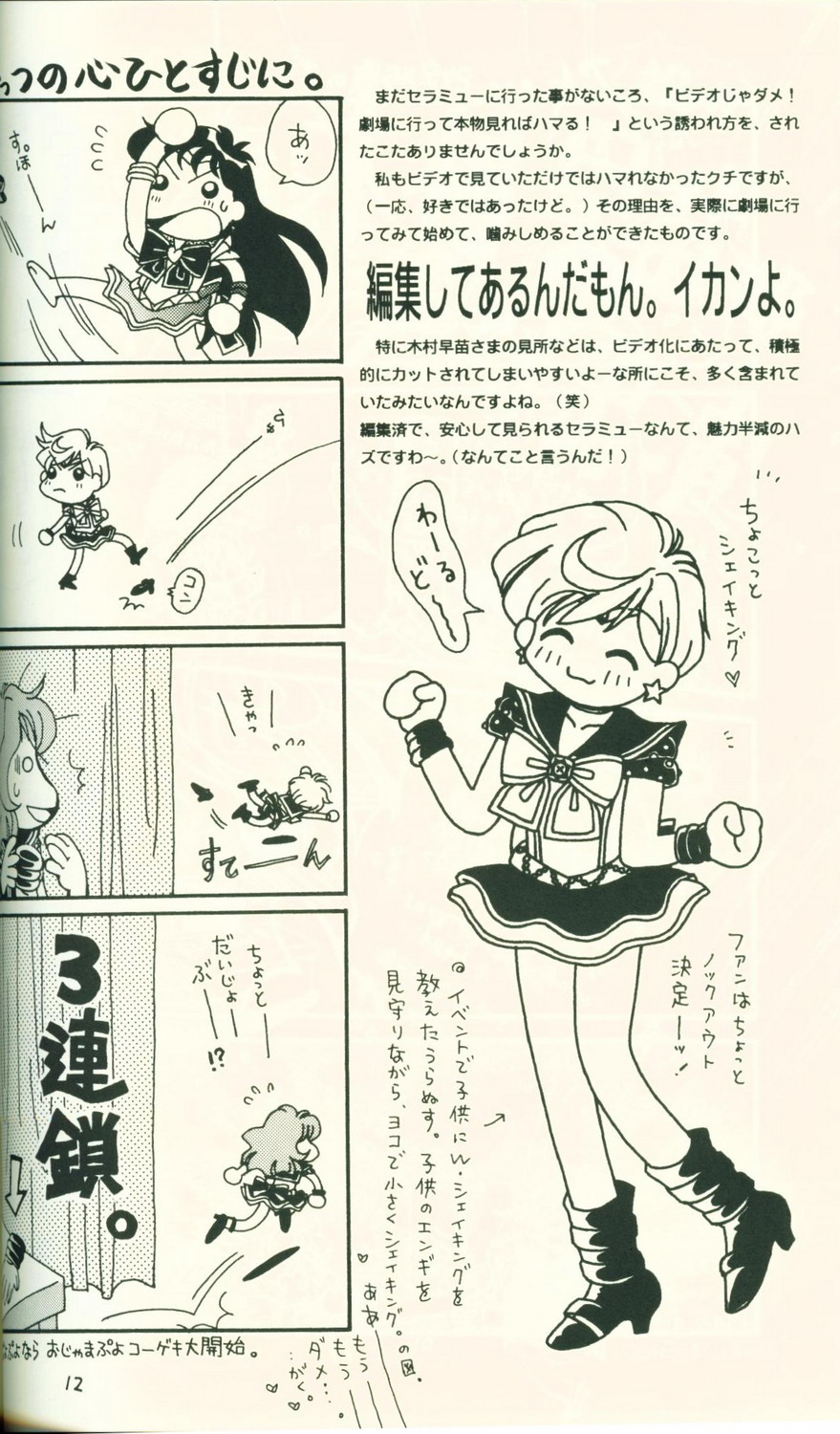 The below images come from the "Sanae Densetsu Kaiteiban - Nao Kourin" doujinshi (published fan made manga) by Tapioca Musume, posted here with permission and courtesy of Samantha of Seramyu Antics. Most of them contain Haruka (Sailor Uranus) from the Sailor Moon Musicals, but the other senshi also make appearances :).