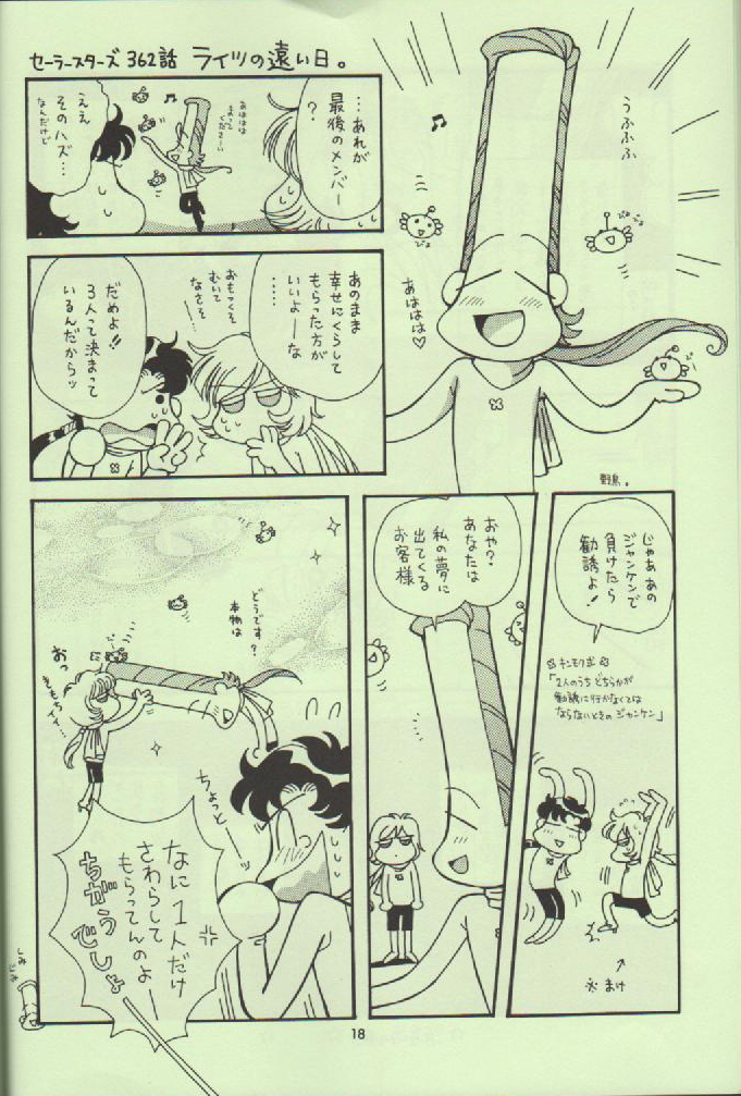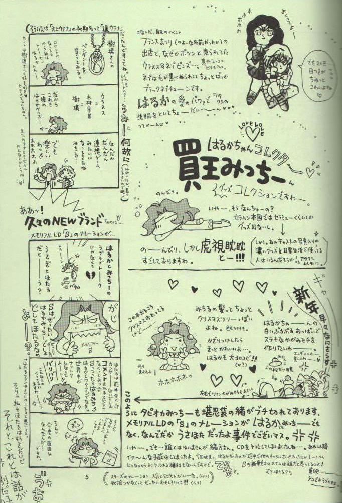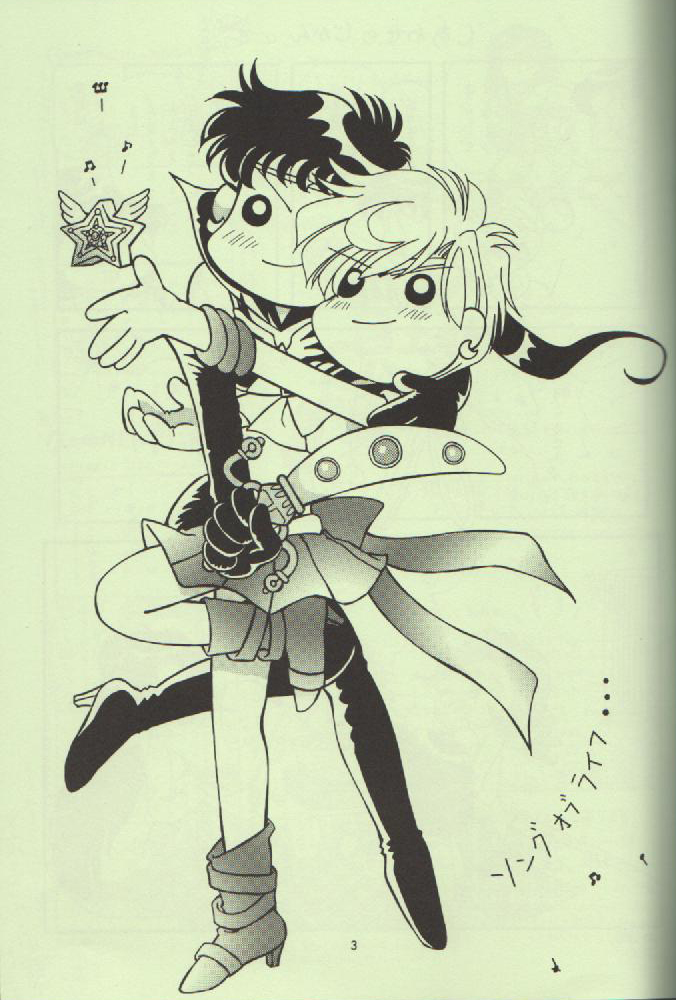 The below images come from the "Song of Life" doujinshi (published fan made manga) by Tapioca Mussume, which was scanned by Yuri-chan, posted here with permission. I hope you all enjoy them a much as I do. Most of them focus on the Outer senshi and the Sailor Starlights.