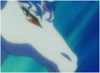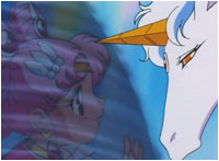In episode 163, the Amazones Quartetto capture Pegasus and tries to ride the winged horse but they fail. Angered by not getting what they want, PallaPalla puts an energy bridle on Pegasus and attempt to pull out his horn. The Golden Crystal which was living in it sends out flames and Pegasus is surrounded by a ring of fire. Sailor Chibimoon, who was unconscious wakes up when she hears him neighing in pain. Ignoring the danger, she runs through the flames and uses all her strength to rip the bridle apart. Finally the flames disappear.