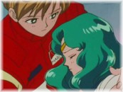 When Uranus and Neptune are killed in the final battle against Sailor Galaxia, they reached their hands to each other, held tightly, as they slowly faded away... (very sad)