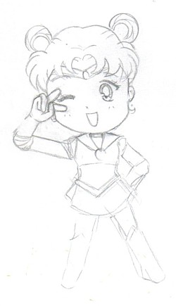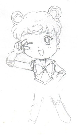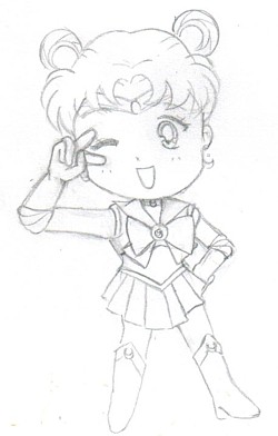 10.Well done! Now you've got your own chibi Sailor Moon. Before you leave it at that, why not ink it so you can colour it in ^_^